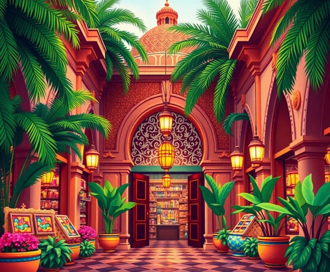 Transform your living space with this stunning Opulent Tropical Bazaar Gates Paint By Numbers masterpiece. This intricate design captures the exotic beauty of Middle Eastern architecture through vibrant archways and luxurious detailing. Moreover, each numbered section guides you through creating your own tropical paradise.