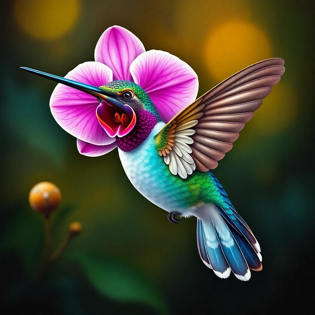 Ultimately, add final details to bring your orchid and hummingbird to life. Step back and admire your completed masterpiece. Your finished artwork deserves prominent display in your home.