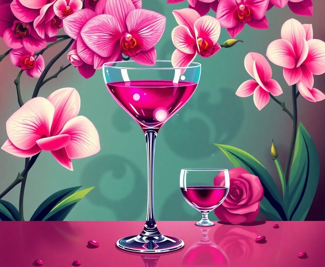 Ultimately, complete the delicate orchid petals and martini glass highlights. Apply final touches to enhance the glamorous atmosphere. Your finished piece will showcase the timeless appeal of vintage luxury. Display proudly as a testament to your artistic achievement.