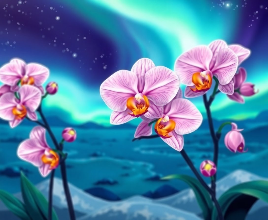 Transform your space with the mesmerizing beauty of arctic flora illuminated by dancing northern lights. The Orchids Beneath Polar Lights Paint By Numbers captures nature’s most ethereal moment, where delicate blooms meet celestial wonder in a stunning nighttime scene.