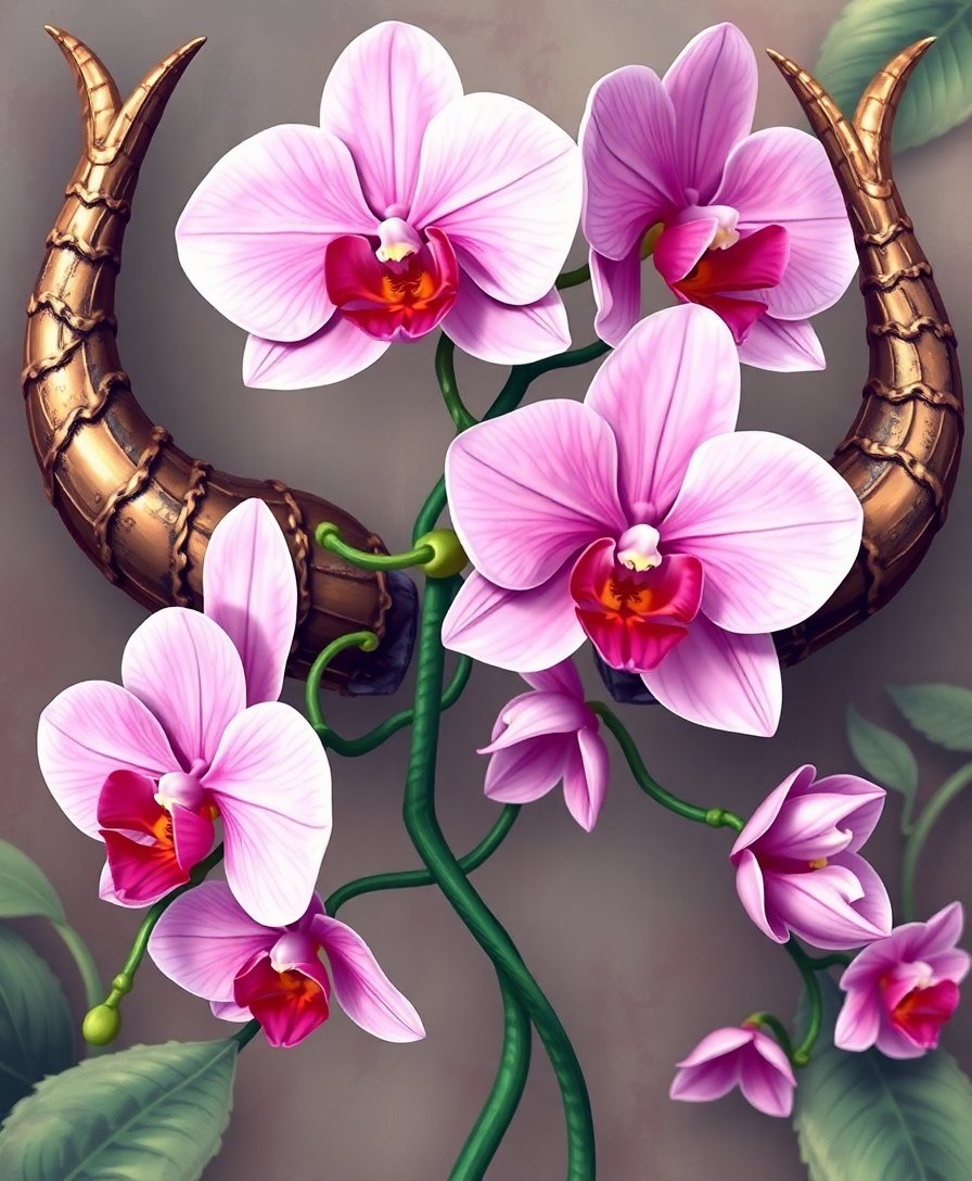 Transform your space with the captivating beauty of the Orchids Entwining Antique Horns Paint By Numbers. This extraordinary design blends tropical elegance with mystical charm. Furthermore, each brushstroke reveals intricate details that bring exotic flora to life.
