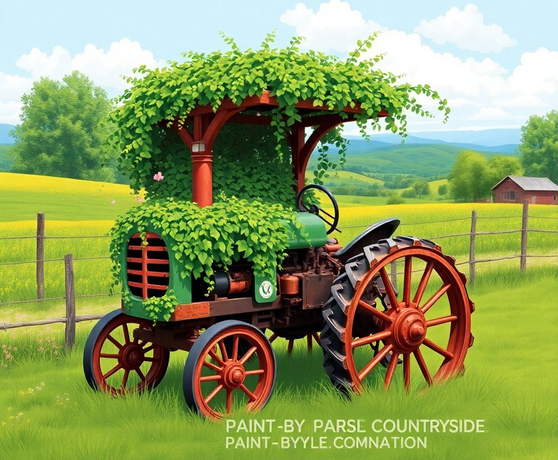 Overgrown Antique Farm Machine Paint By Numbers