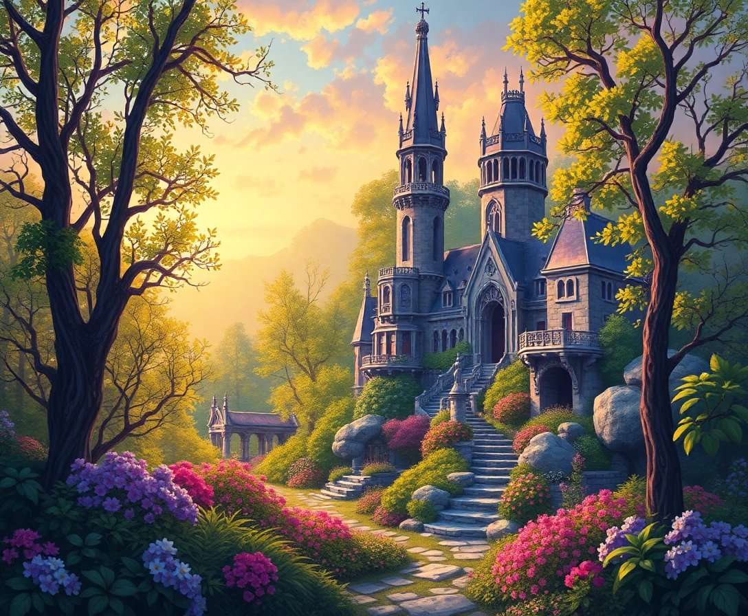 What’s Included in Your Overgrown Citadel Morning Light Paint By Numbers Kit