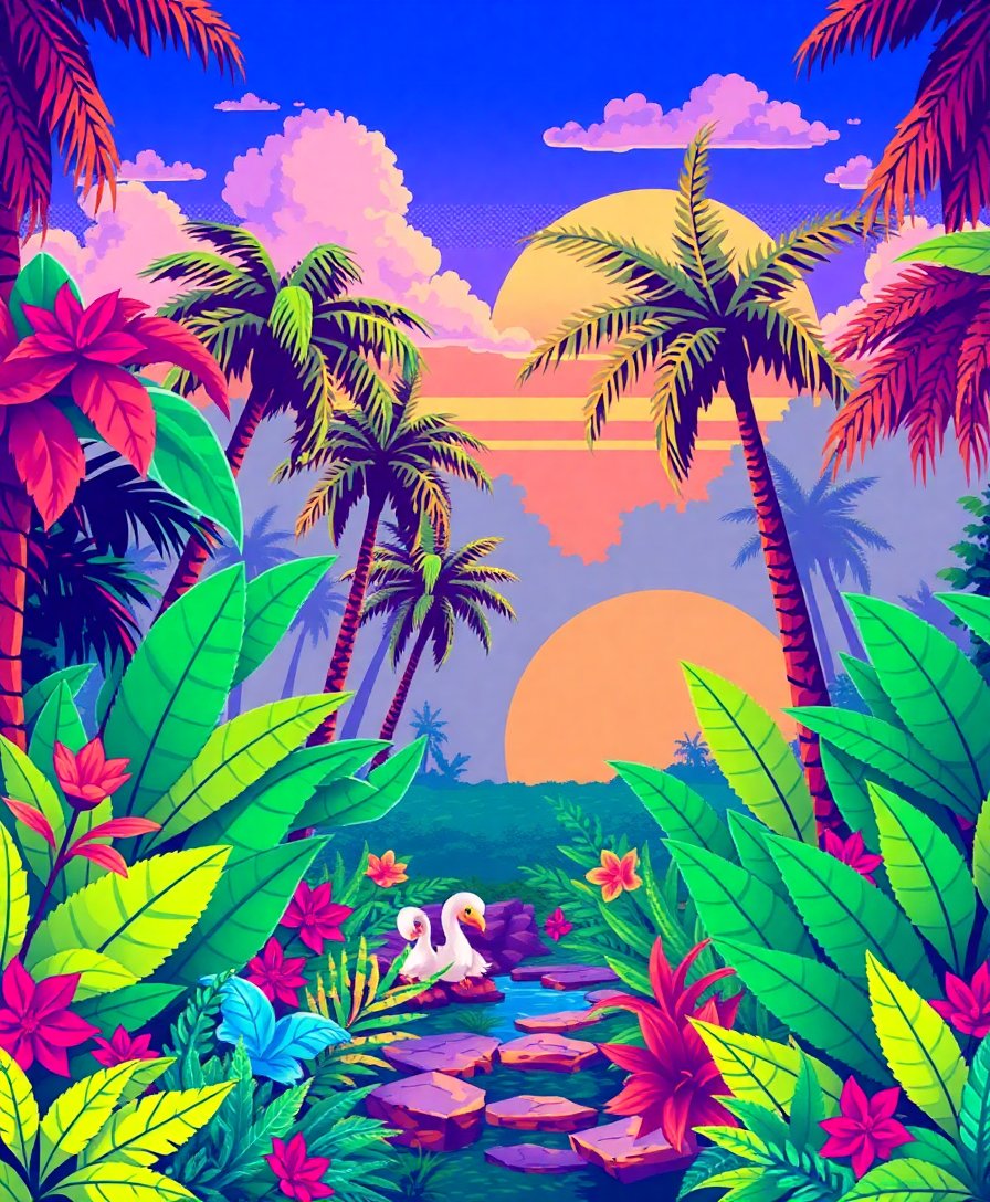 This unique design combines retro gaming nostalgia with tropical beauty. Moreover, high-quality materials ensure lasting results and satisfaction. The eight-bit graphics style appeals to gamers and art enthusiasts alike, creating conversation-worthy wall art.