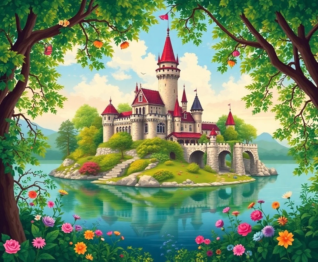 Transform your space with the enchanting Overgrown Romantic Island Castle Paint By Numbers. This captivating kit brings together vintage architectural beauty and tropical paradise. Create your own romantic escape through detailed brushstrokes.