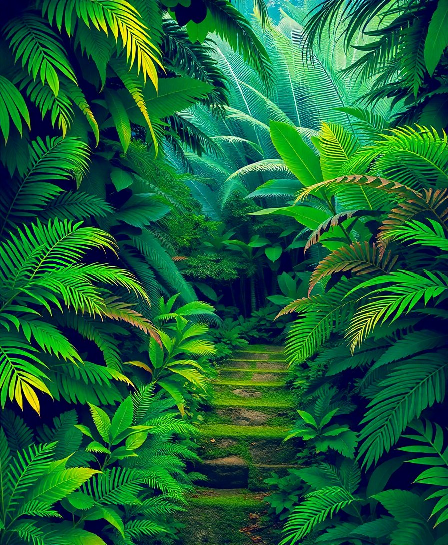 Transform your creative space with this stunning Overgrown Tropical Fern Path Paint By Numbers kit. This immersive painting experience captures the serene beauty of a jungle pathway surrounded by lush tropical vegetation. Meanwhile, gentle sunlight filters through the canopy above.