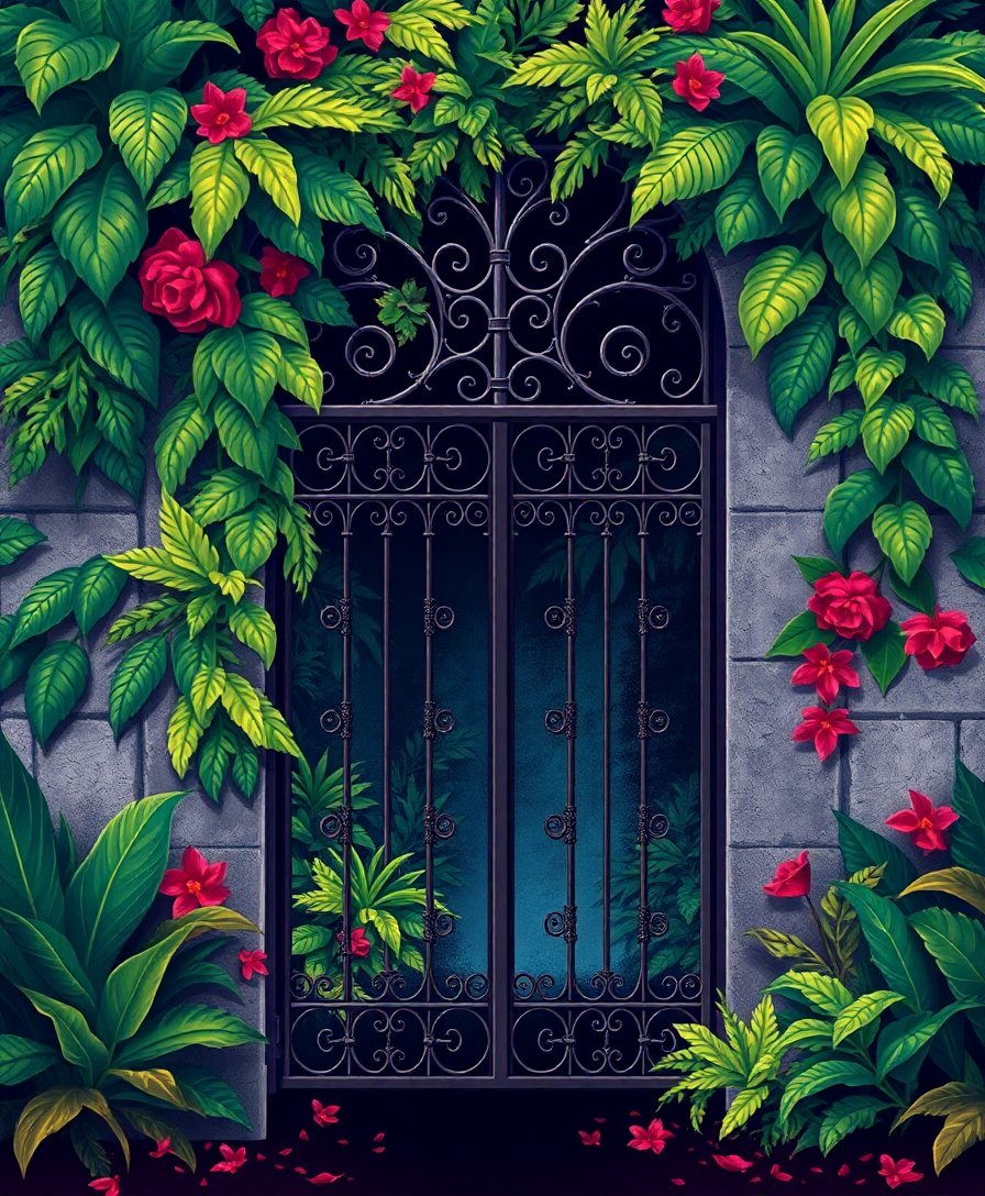 Perfect for Halloween enthusiasts who appreciate vintage macabre aesthetics! The tropical ironwork theme offers sophisticated gothic appeal that works beautifully year-round.