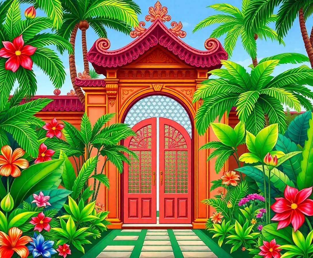 Transform your space with the enchanting beauty of weathered palace gates embraced by lush tropical vegetation. This Overgrown Tropical Palace Gates Paint By Numbers kit captures the romantic essence of forgotten grandeur reclaimed by nature’s vibrant embrace.