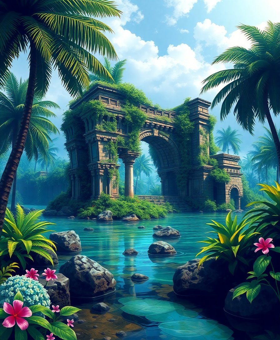 Ultimately, step back and admire your completed tropical paradise. Add final details with your smallest brush for precision. Your Atlantis Ruins masterpiece now awaits its perfect display location.