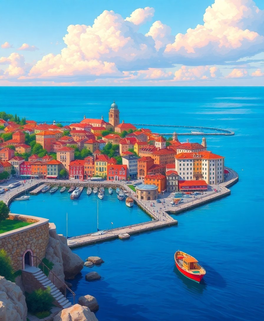Transform your space with the breathtaking Overlooking The Historic Bay Paint By Numbers, capturing a stunning seascape view from an elegant balcony perspective. This remarkable kit brings together the charm of antique coastal towns with the golden hues of a magnificent sunset.