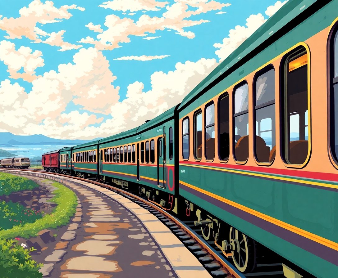 Creating your vintage railway masterpiece becomes effortless with our systematic approach. Follow these simple steps to bring this tropical departure scene to life.