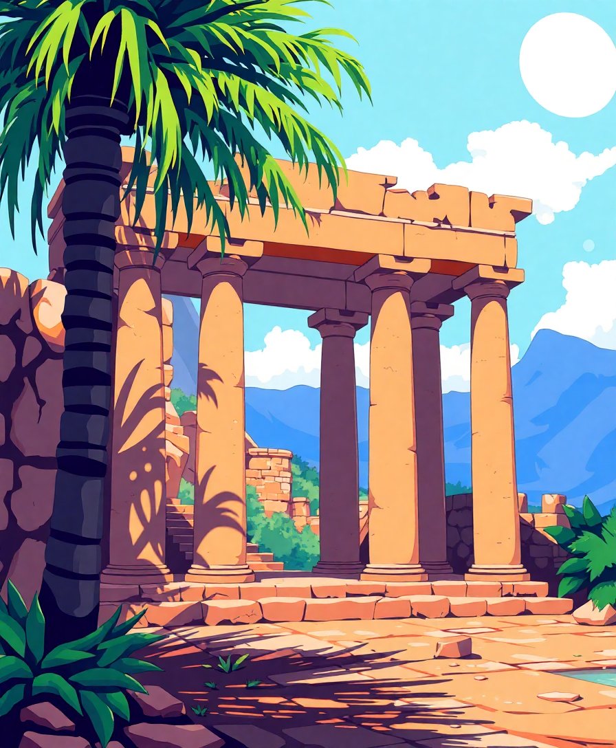 Ultimately, step back to admire your finished creation. The interplay between shadows and golden light captures the essence of ancient Hellenic ruins. Your completed masterpiece radiates timeless beauty and cultural significance.