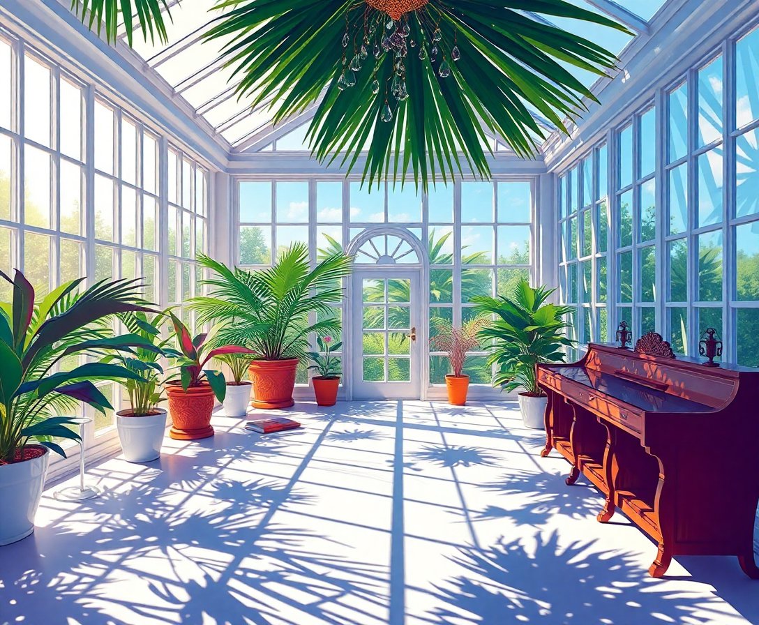 Embrace the tranquil beauty of tropical shadows and vintage keys. Create your own peaceful oasis with this captivating paint by numbers kit, bringing the serene atmosphere of a botanical conservatory directly into your home.