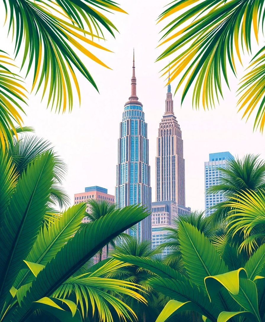 Transform your space with this stunning architectural masterpiece that beautifully combines tropical palms with towering urban landscapes. This Palms Framing Realistic Skyscrapers Paint By Numbers kit captures the perfect contrast between natural botanical elements and impressive cityscape views.
