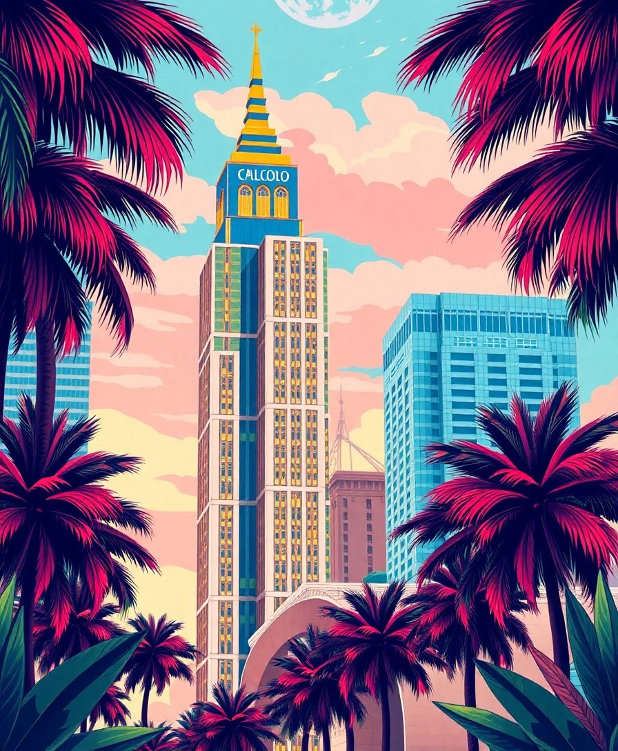 Transform your space with this stunning Palms Framing Retro Deco Paint By Numbers masterpiece. This sophisticated design captures the glamour of vintage Art Deco architecture framed by elegant palm silhouettes. Subsequently, you’ll create a timeless piece that brings metropolitan elegance to any room.
