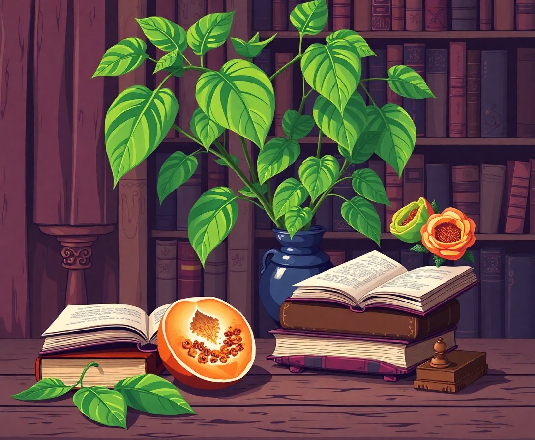 Transform your space with this enchanting Papaya Beside Antique Books Paint By Numbers design. This sophisticated artwork captures the serene beauty of fresh sliced fruit alongside vintage literature on a rich mahogany desk. Subsequently, you’ll discover how this cozy indoors scene brings warmth and intellectual charm to any room.