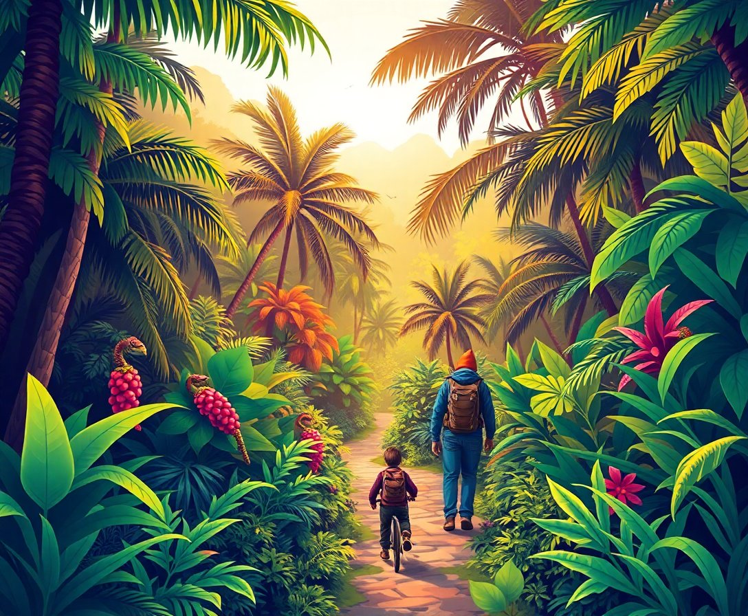 The intricate rainforest details and vibrant emerald green colors create an immersive tropical experience. This lush jungle procession brings festive energy to any room.