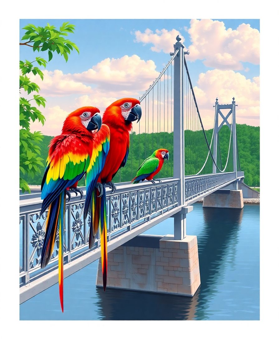 Parrots Over Classic Bridge Paint By Numbers