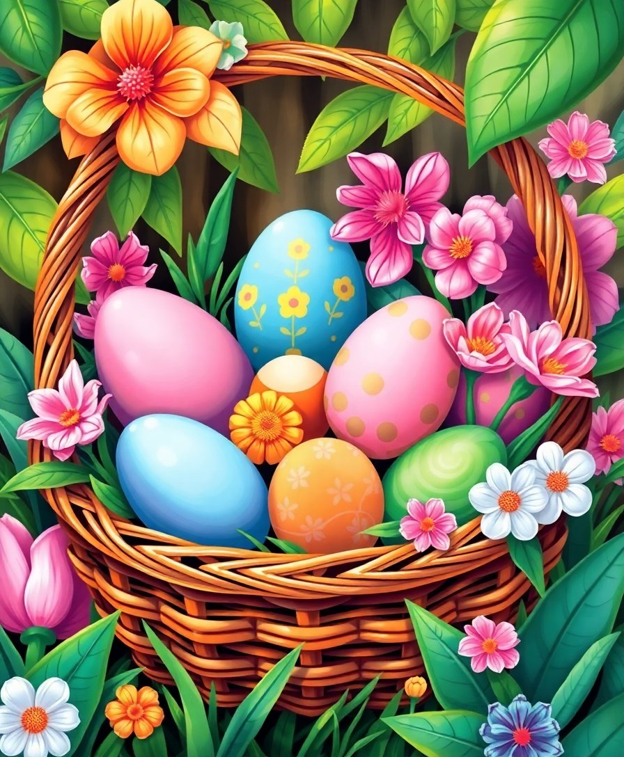Pastel Eggs Jungle Basket Paint By Numbers