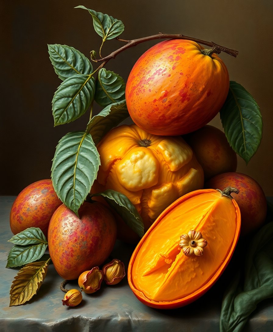 Ultimately, add final details with precision brushwork. Consequently, your vintage mango composition emerges with authentic baroque elegance. The finished piece radiates classical sophistication.