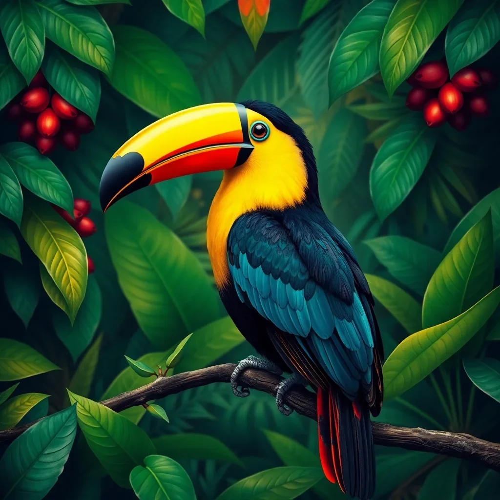 Ultimately, add the final details to the jungle foliage and background elements. Step back and admire your completed tropical paradise. Your finished artwork will showcase the toucan’s brilliant plumage against the rich jungle backdrop.