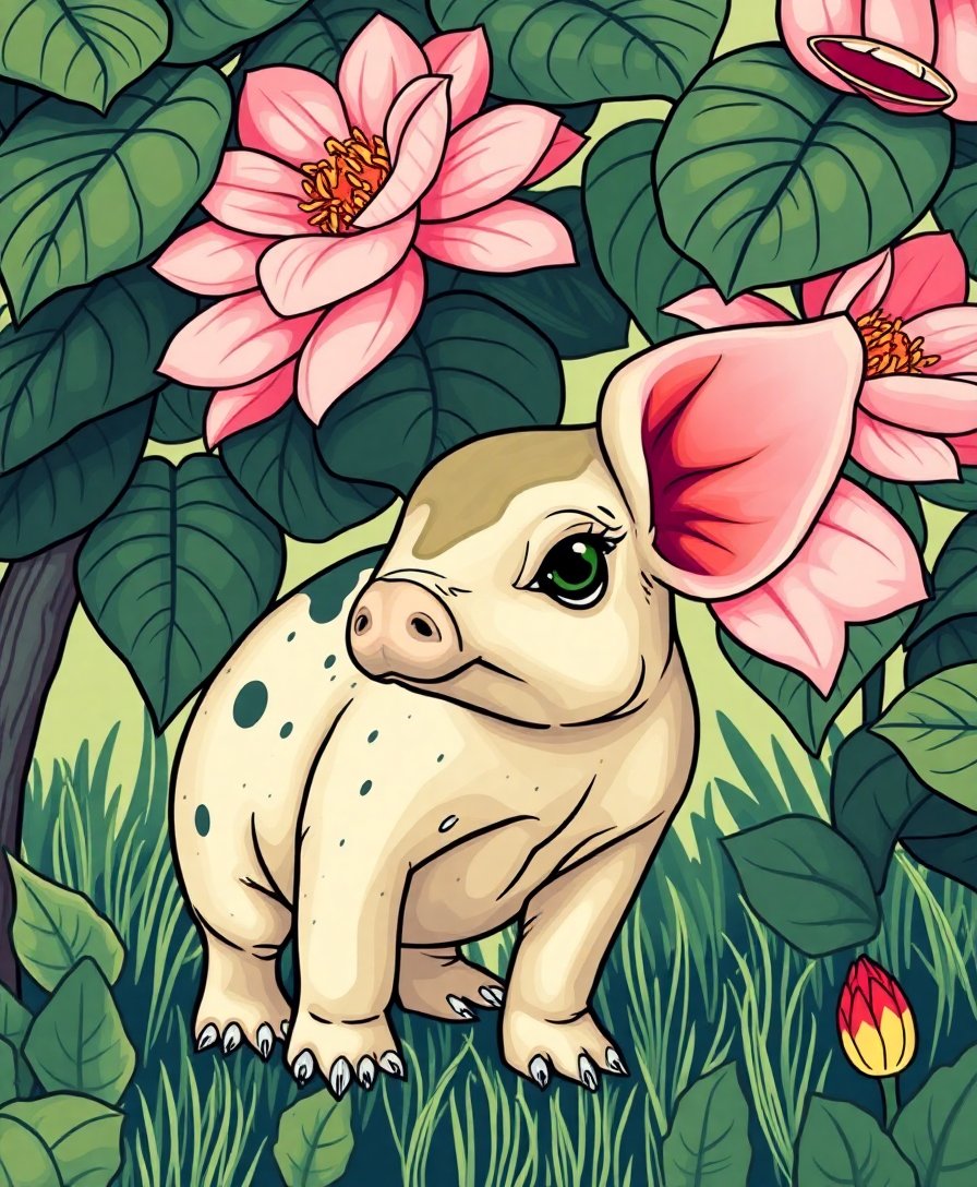Subsequently, begin with the larger background zones around the monstera leaves. This builds confidence and rhythm. Then move toward the piglet and finer flora details. As the image emerges, your brushstrokes will feel more assured. Therefore each session becomes a mindful break from screens and stress.