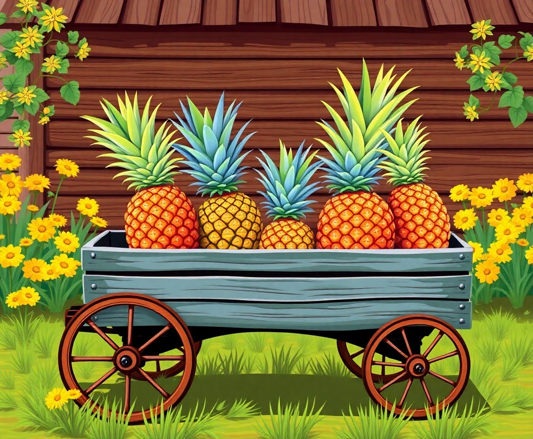 Transform your creative space with this charming Pineapples In Vintage Wagon Paint By Numbers kit. This delightful design captures golden hour warmth through weathered wood textures and harvest abundance. Perfect for artists seeking rustic autumnal harvests artwork.