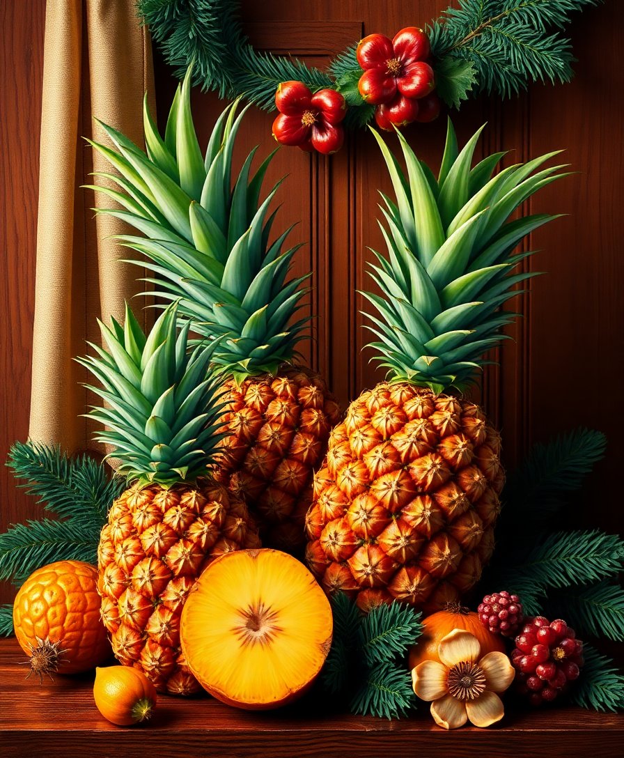 Transform your holiday decorating with this distinctive Pineapples On Vintage Mahogany Paint By Numbers creation. This elegant tropical-meets-traditional design combines festive pineapples with rich mahogany tones. Perfect for creating sophisticated Victorian Winter Christmas artwork that stands apart from typical seasonal decor.