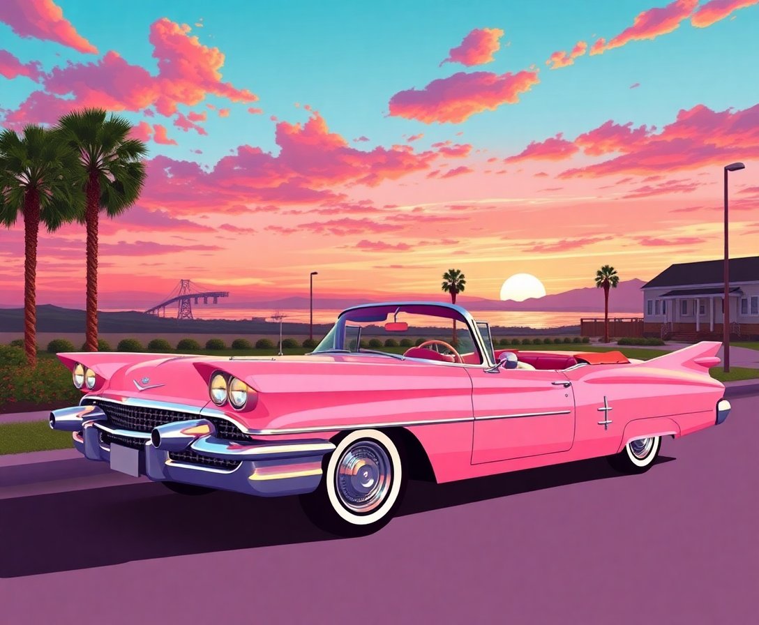 Pink Cadillac Sunset Cinema Paint By Numbers