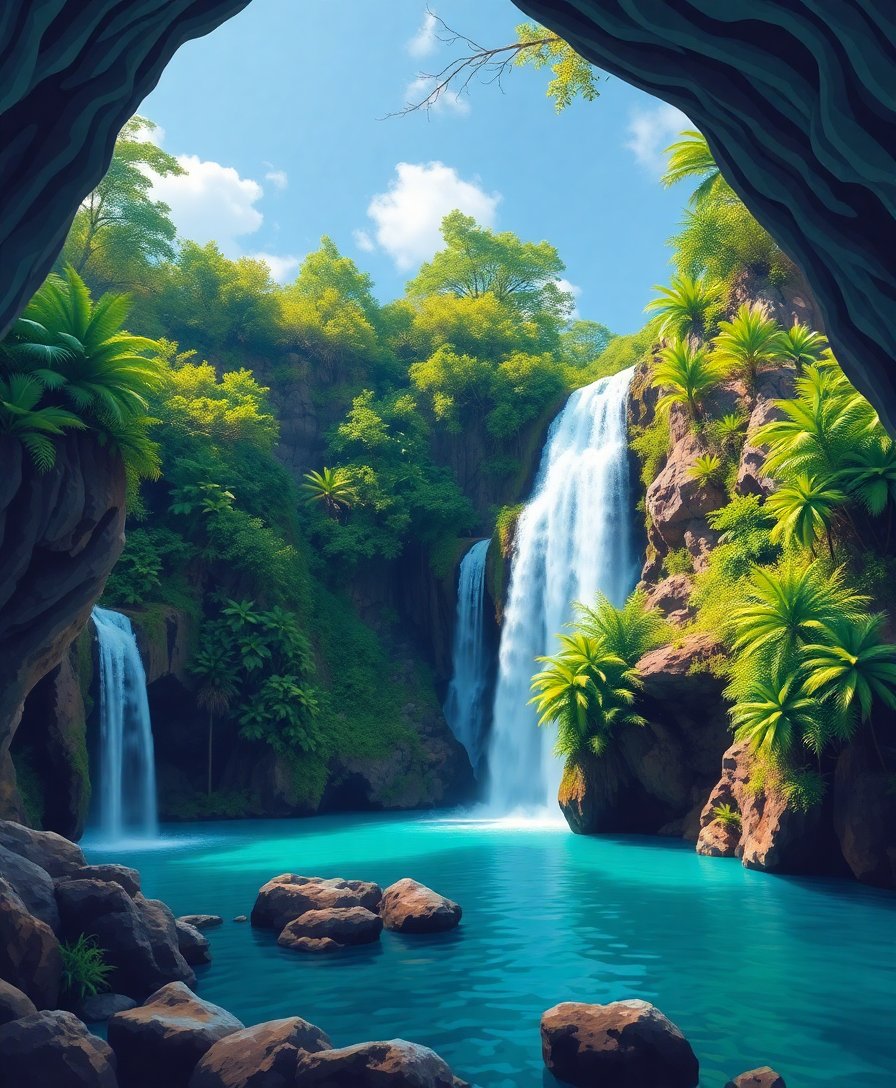 Transform your space with the breathtaking beauty of cascading waters through our landscape masterpiece. This Plunging Tropical Cave Falls Paint By Numbers captures the raw power and serene tranquility of hidden jungle waterfalls.