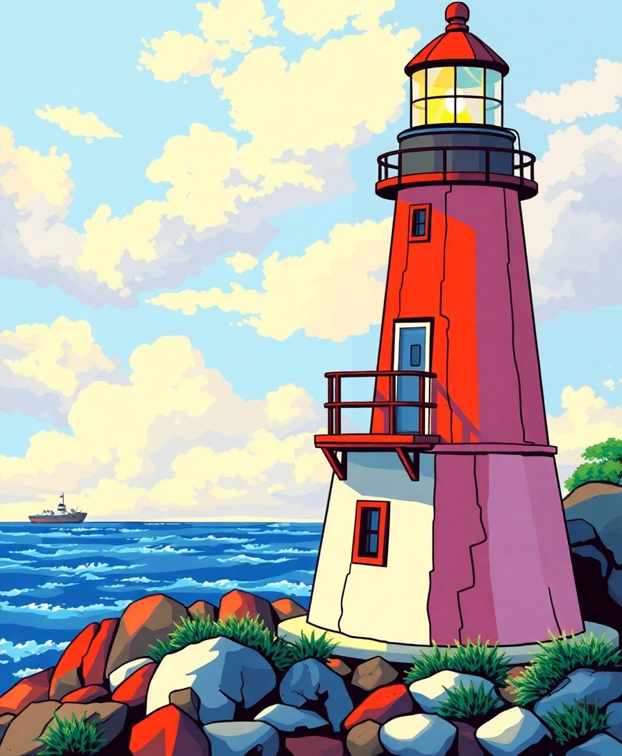 Subsequently, begin with the lighthouse’s weathered stone foundation and work upward systematically. Additionally, blend the island winds across the dramatic sky using gentle brushstrokes. Therefore, each section builds upon the previous one creating natural flow.