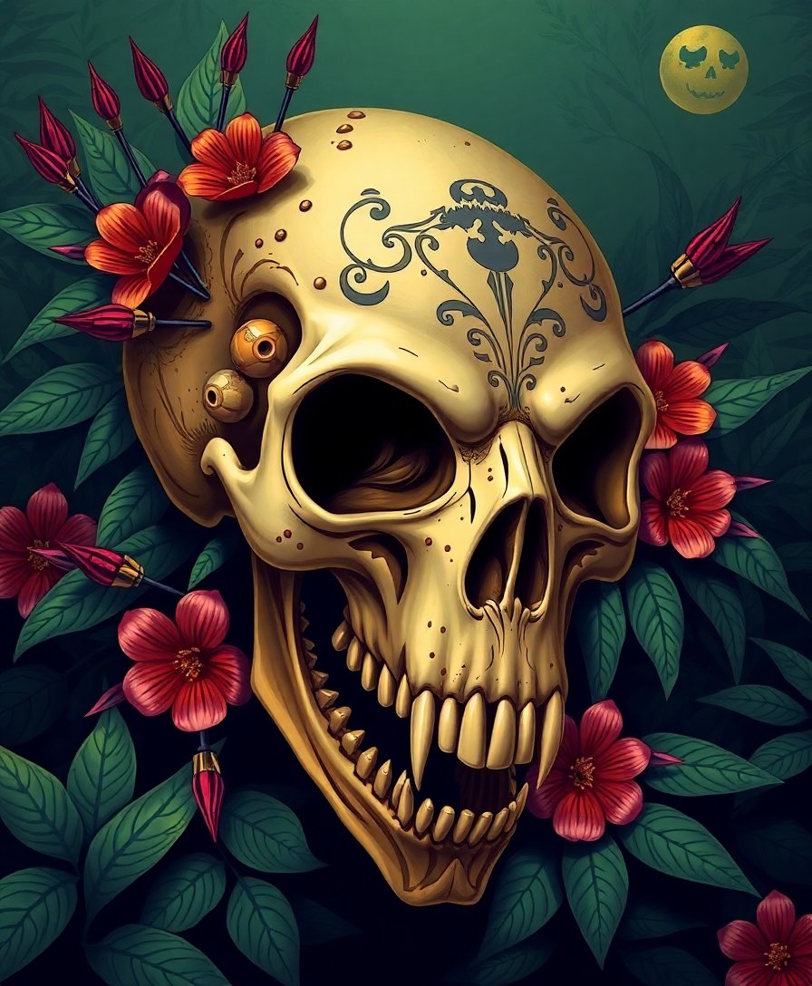 Transform your space with this hauntingly beautiful Poison Dart Jungle Skull Paint By Numbers masterpiece. This vintage-inspired design combines macabre elegance with vibrant neon green dart frog elements. Perfect for artists seeking a spooky creative challenge.