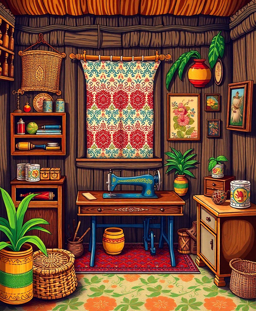 Create your own tropical sanctuary with this exceptional Polynesian Sewing Room Relics paint by numbers masterpiece. Order today and begin your relaxing artistic journey into island heritage craftsmanship.
