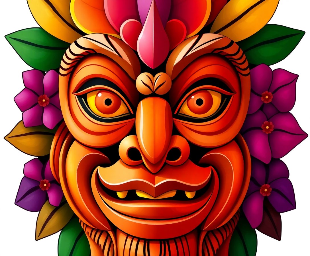 Authentic island artistry meets modern convenience in this exceptional design. The realistic woodgrain texture and vibrant red hibiscus create stunning visual depth. Perfect for cultural art enthusiasts and carved mask collectors alike.