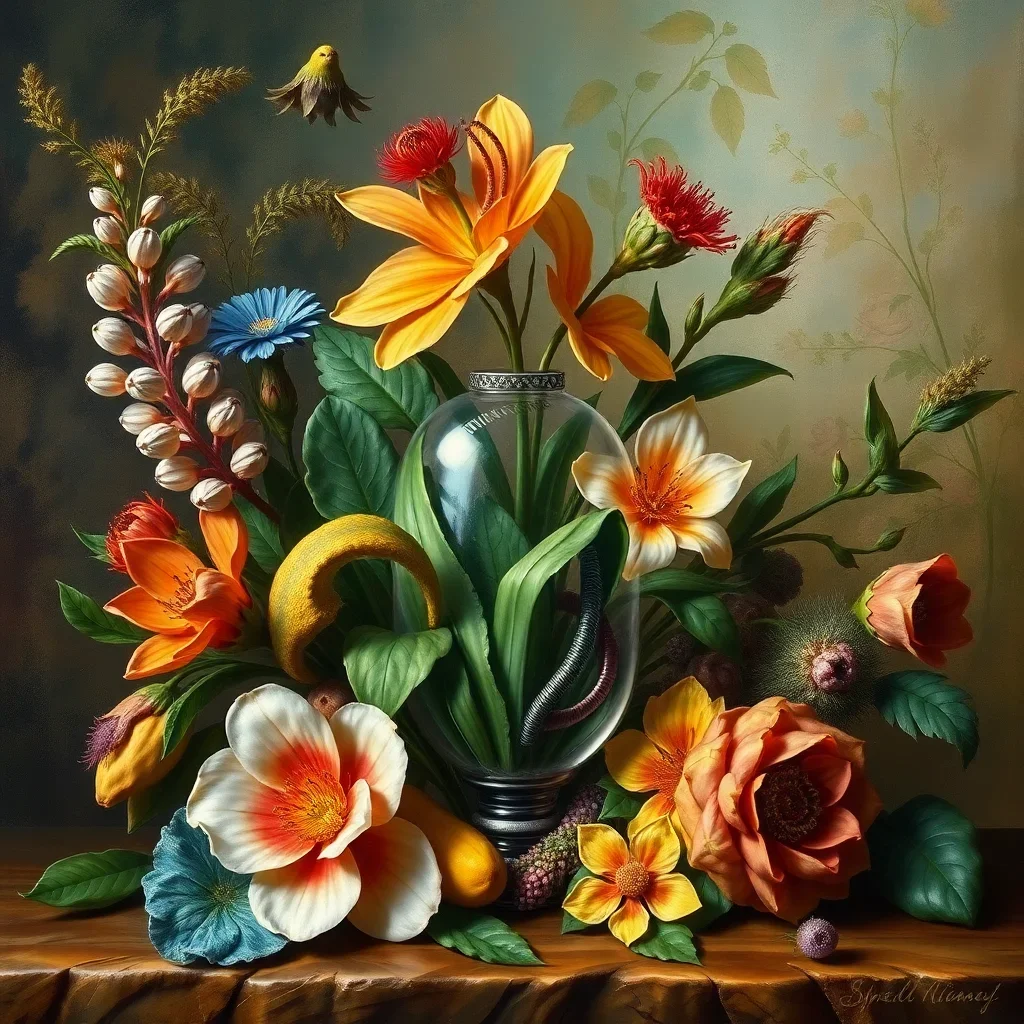 This unique design combines vintage charm with exotic beauty perfectly. Moreover, the rich amber palette creates stunning visual depth. Similarly, the baroque still life influence adds sophisticated elegance. Additionally, the moody atmosphere transforms any space dramatically.