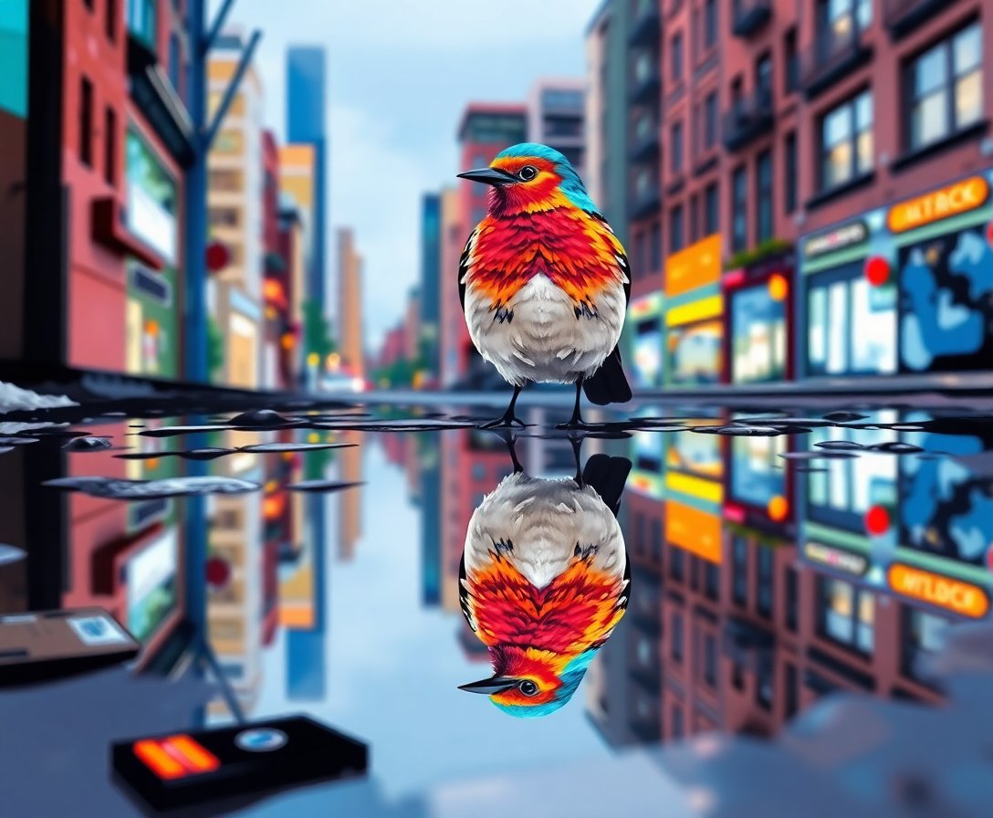 Transform your creative space with the captivating Puddle Reflected Urban Bird Paint By Numbers. This stunning street art design captures urban wildlife in perfect reflection. Moreover, it combines modern graffiti aesthetics with nature’s beauty.