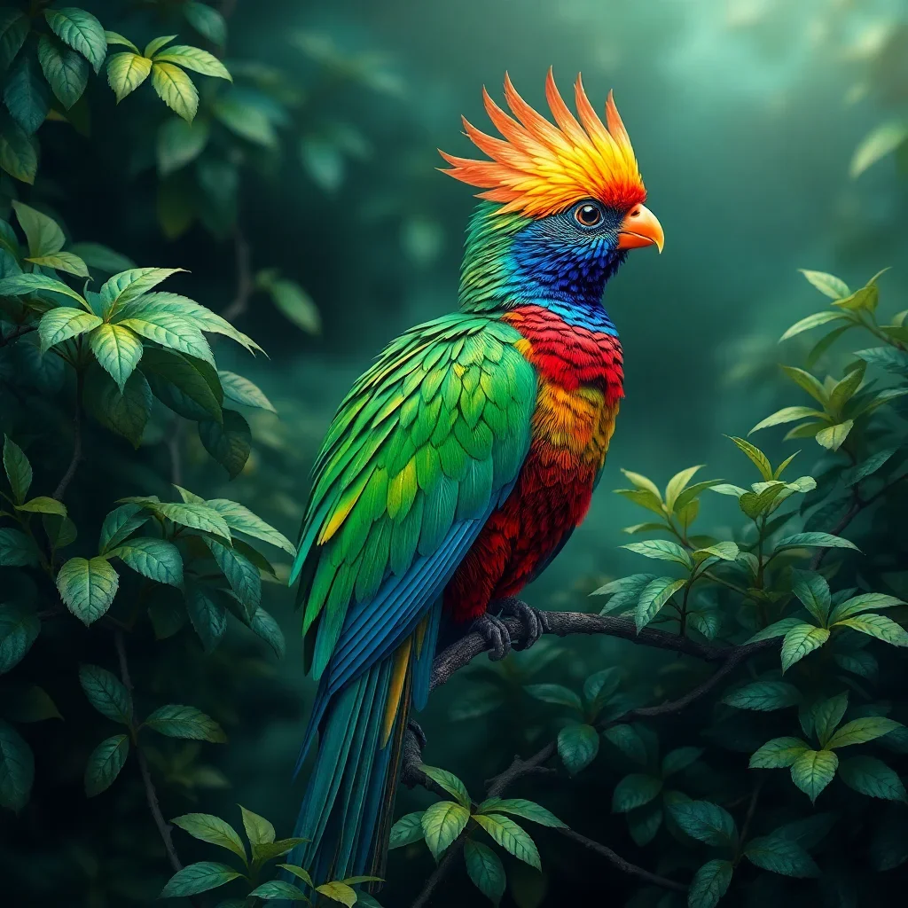 Subsequently, begin with the larger sections using your medium brush. Additionally, work methodically from light to dark colors to prevent muddying. Watch as the majestic quetzal emerges from the misty foliage with each careful brushstroke.