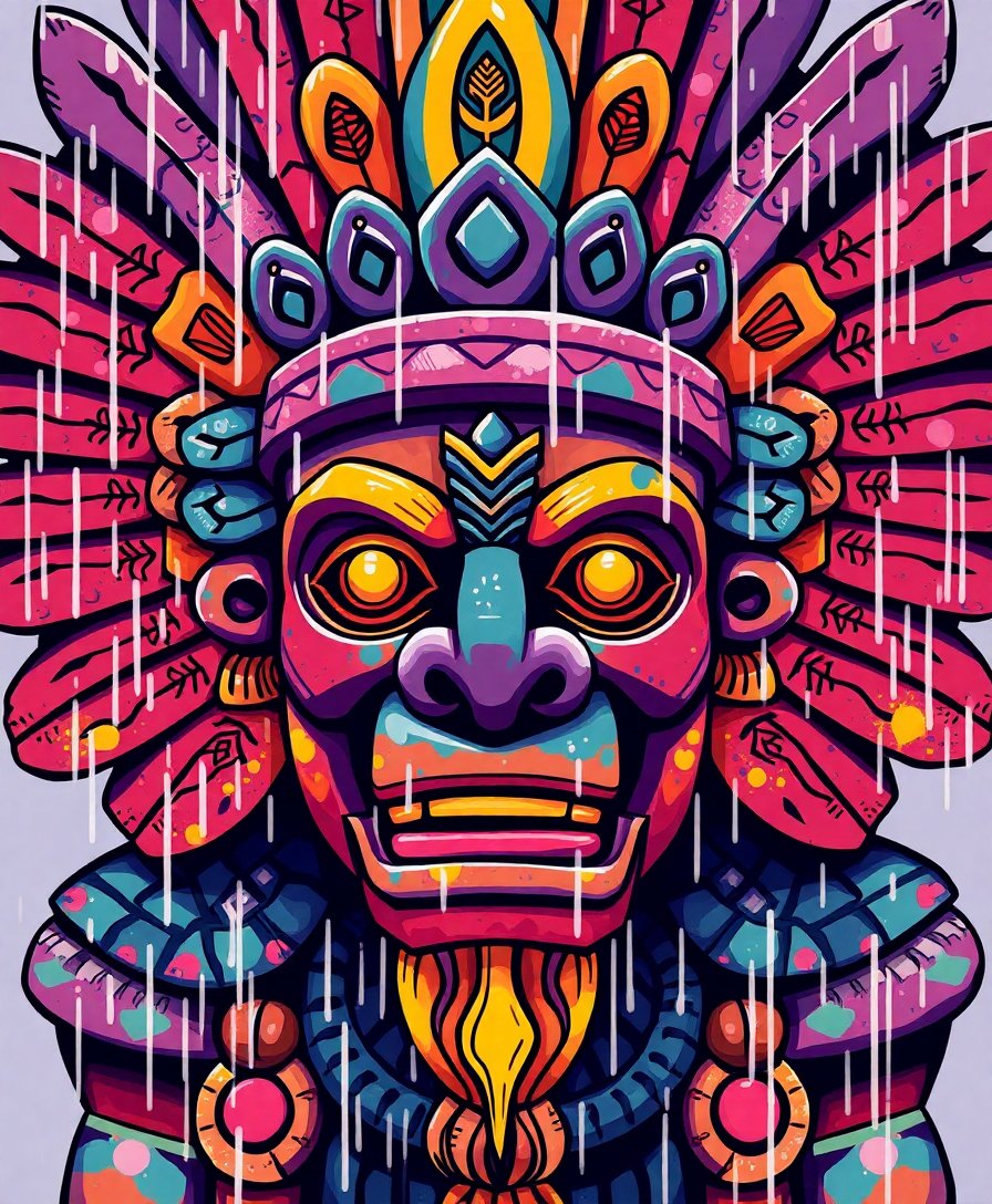 This design captures authentic Aztec artifact details with realistic wet stone textures and raindrops. The historical significance combined with artistic beauty creates a meaningful painting experience.