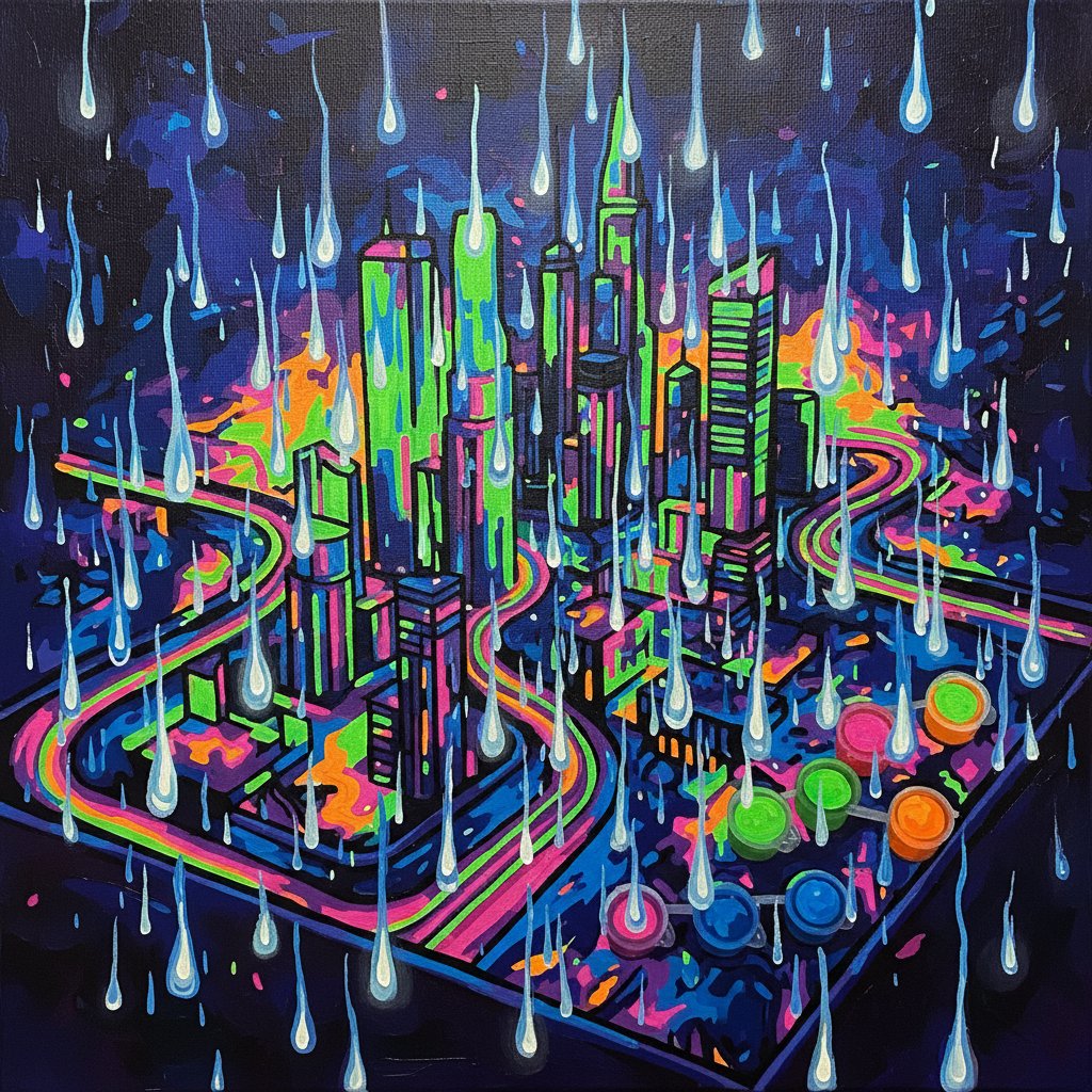 What’s Included in Your Raindrops On Vintage Neon Paint By Numbers Kit