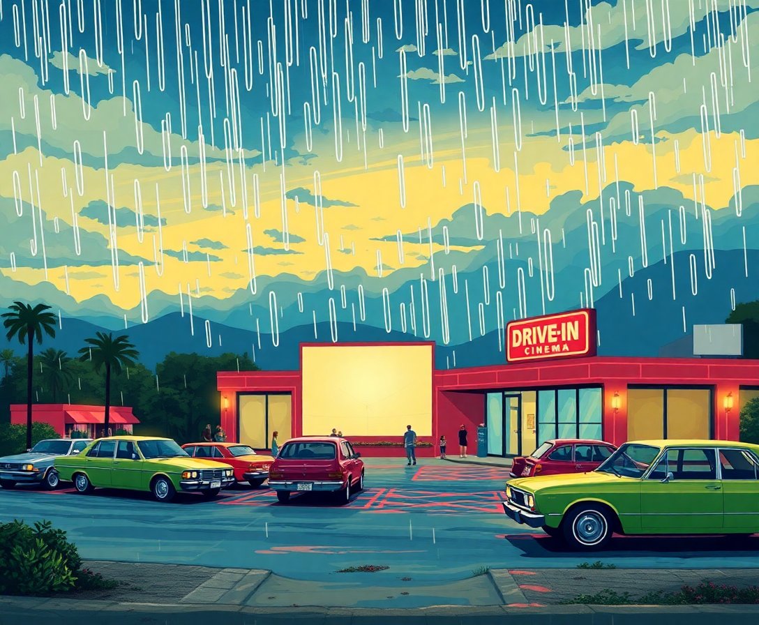 Transform your artistic journey with this captivating Rainy Vintage Island Cinema Paint By Numbers kit. This nostalgic masterpiece captures the enchanting atmosphere of a tropical drive-in theater on a rainy evening. Moreover, you’ll create stunning entertainment art that brings vintage cinema romance to life.