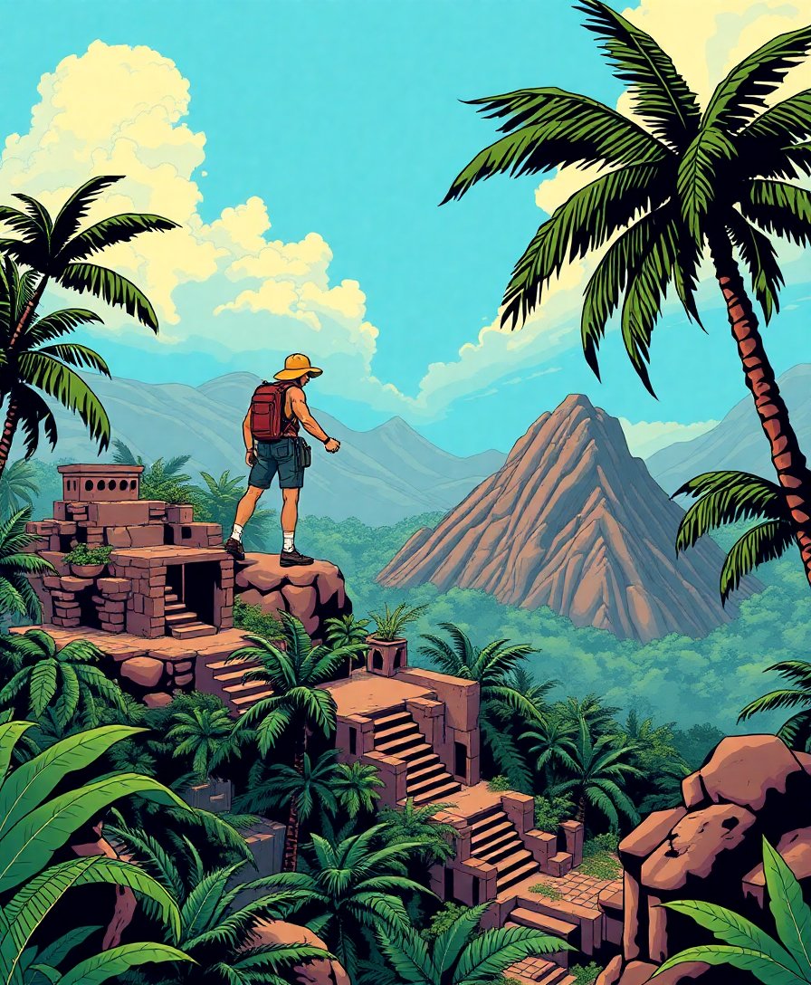 Premium linen canvas ensures lasting quality and professional appearance. Moreover, the realistic design challenges intermediate painters while remaining accessible. The tropical pyramid setting offers unique subject matter beyond typical landscape options. Finally, this golden age comic heroes inspired artwork makes an impressive wall display.