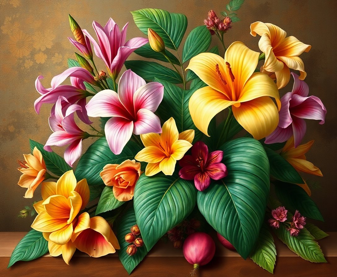 Transform your space with this captivating Realistic Antique Tropical Flora Paint By Numbers masterpiece. This intricate design celebrates the beauty of exotic botanicals through vintage artistry. Each brushstroke brings mysterious tropical elements to life with stunning detail.