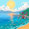Ultimately, add finishing touches with the small brush for intricate foliage details. Allow each section to dry completely before moving to adjacent areas. Your tropical haven masterpiece emerges beautifully.
