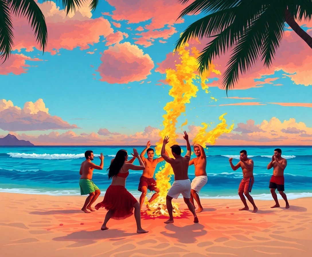 Transform your creative space with this captivating Realistic Beach Fire Dance Paint By Numbers masterpiece. This stunning artwork captures the mesmerizing energy of tropical performers dancing around flickering flames on pristine sand. Additionally, each brushstroke brings the warmth and magic of island festivities to life.