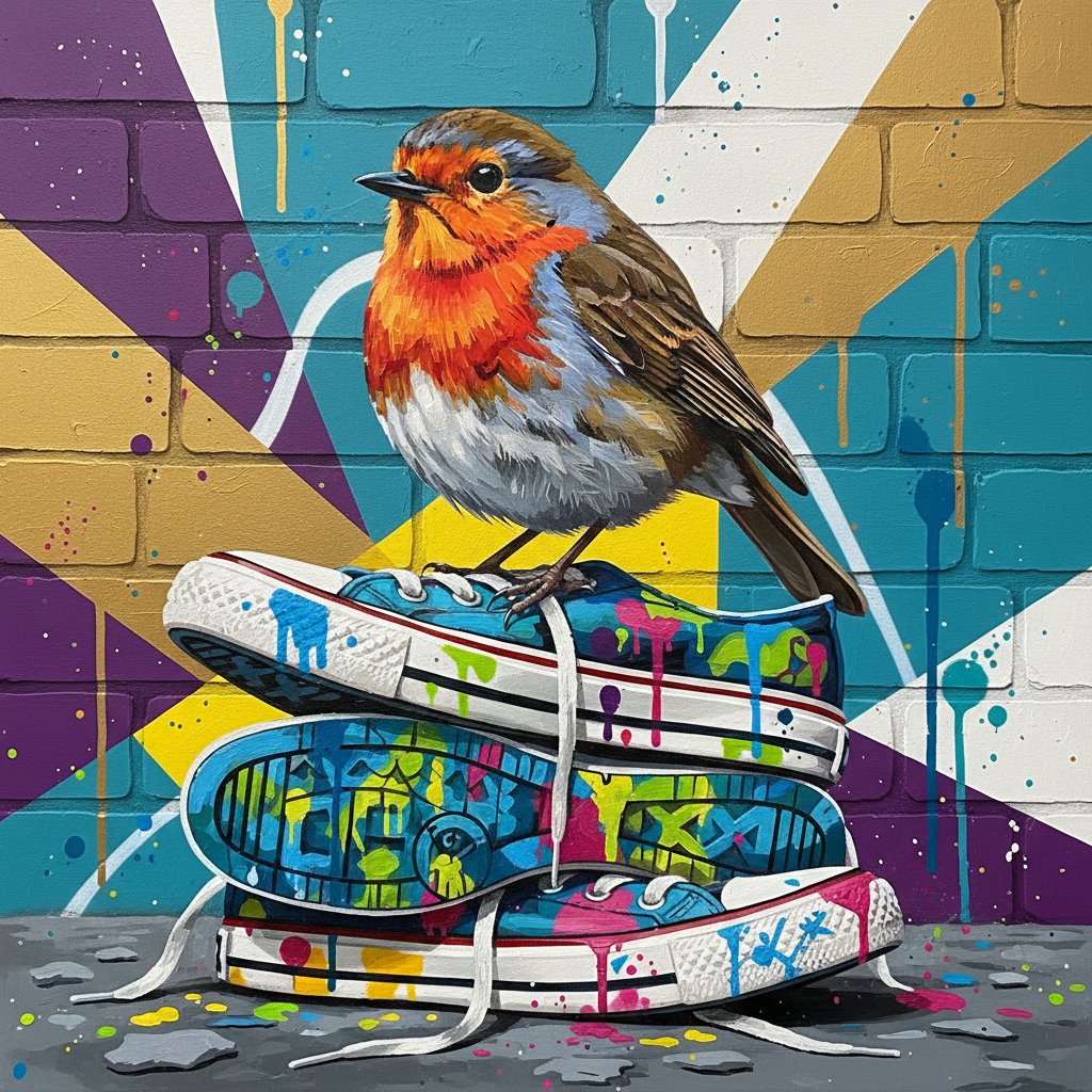 Transform your creative space with this stunning Realistic Bird Retro Soles Paint By Numbers design. This unique artwork combines urban streetwear culture with intricate avian details. Each feather is meticulously crafted to bring life to these high-top sneakers.