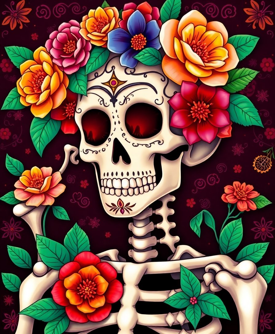 Transform your creative space with the Realistic Bone And Bloom Paint By Numbers, a stunning tribute to Día de los Muertos tradition. This intricate design combines skeletal imagery with delicate floral elements. The somber ivory tones create depth and meaning. Each brushstroke honors this beautiful cultural celebration.