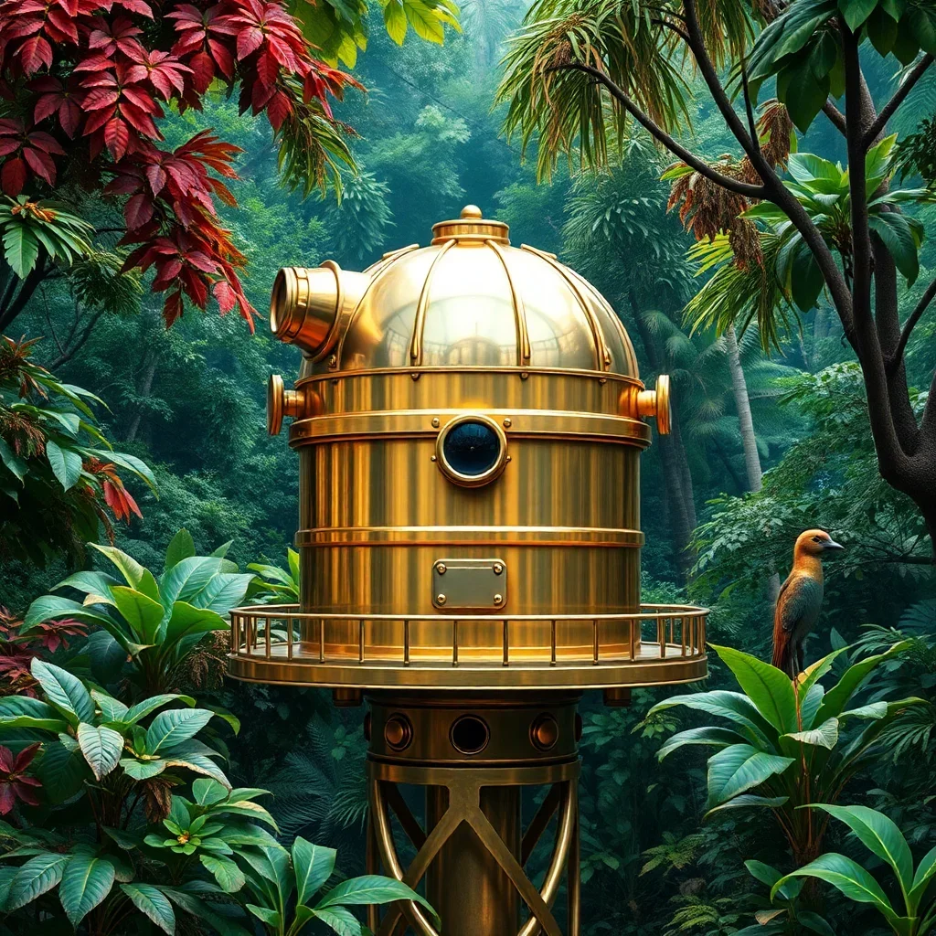 Transform your creative space with this stunning Realistic Brass Jungle Observatory Paint By Numbers masterpiece. This intricate design combines vintage elegance with lush botanical beauty. Moreover, every brushstroke brings you closer to creating your own tropical sanctuary.