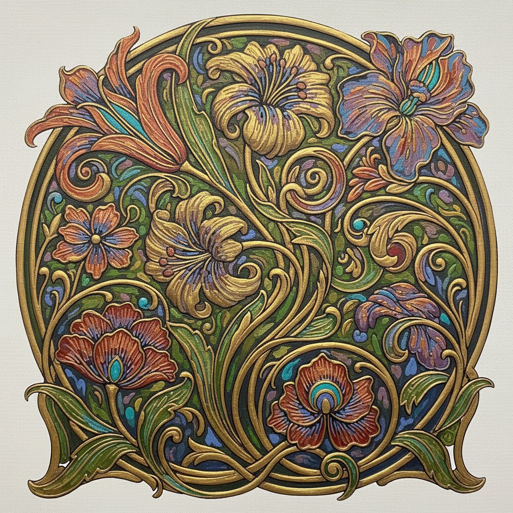 Experience the satisfaction of creating your own Art Nouveau botanical masterpiece. This Realistic Brass Nouveau Botanical Paint By Numbers kit transforms relaxation time into artistic achievement.