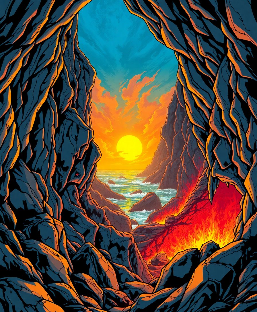 Realistic Coastal Cave Inferno Paint By Numbers
