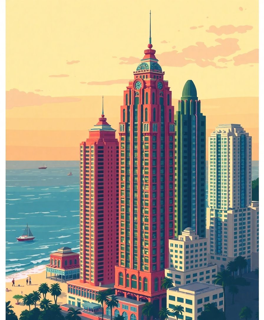Transform your space with stunning waterfront architecture through this captivating Realistic Coastal Deco Towers Paint By Numbers kit. This sophisticated design showcases elegant art deco skyscrapers reflecting gracefully across shimmering coastal waters. Each brushstroke brings you closer to creating your own metropolitan masterpiece.